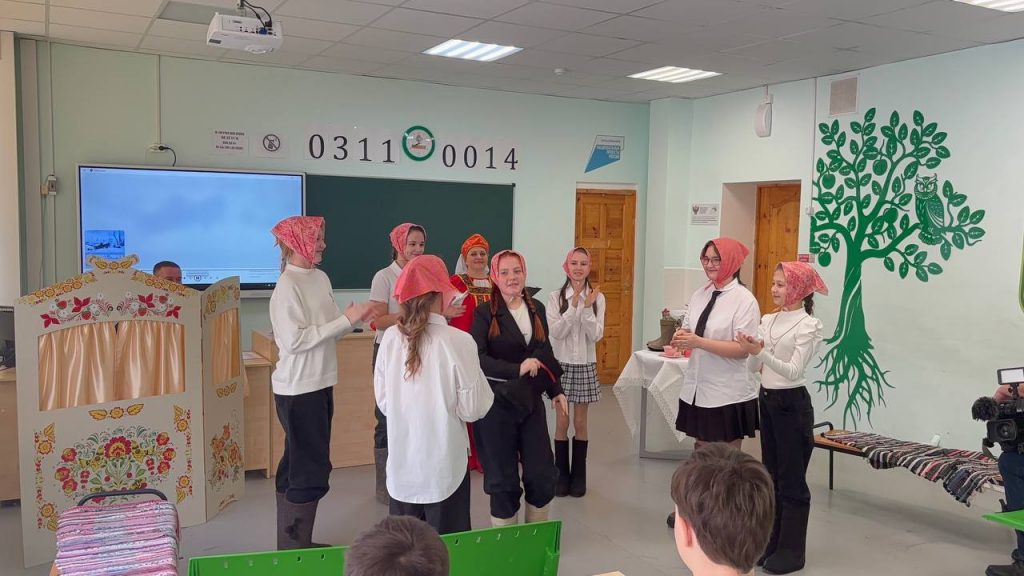 22 января в рамках акции «Мелодии вместо звонков» в образовательном учреждении состоялся урок для шестиклассников, посвященный истории русского народного песенного творчества и фольклору. Детям рассказали о народных песнях, обычаях и приметах, связанных с традиционной обувью.