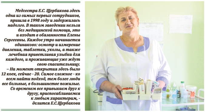 — Мне моя работа нравится. Долгое время (27 лет) работала в школе, сначала вожатой, затем учителем истории, потом нашу школу закрыли и пришла сюда. Проживающие – те же самые дети, только они уже не станут самостоятельными. И от этого хочется уделить им еще больше внимания, которое так необходимо этим людям с трудной судьбой и слабым здоровьем.